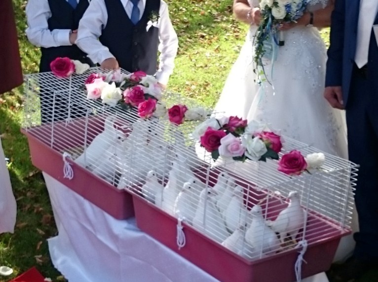 Schwiegereltern vermaehlungsvideo mit den Weisse Tauben zur vermaehlung Nach der